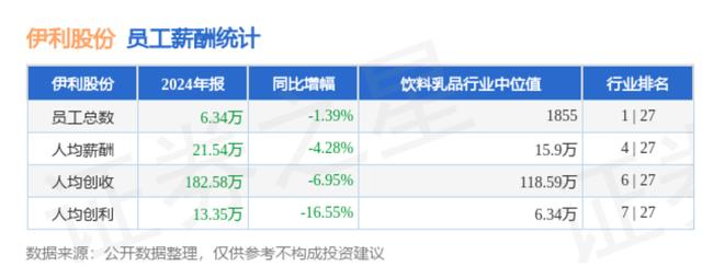 根据伊利2024年报,公司员工人均薪酬约为21.5万元。