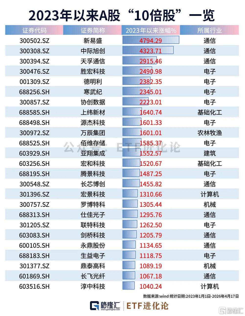 中际旭创自2023年以来涨幅4323.71%,涨幅位居A股第二。