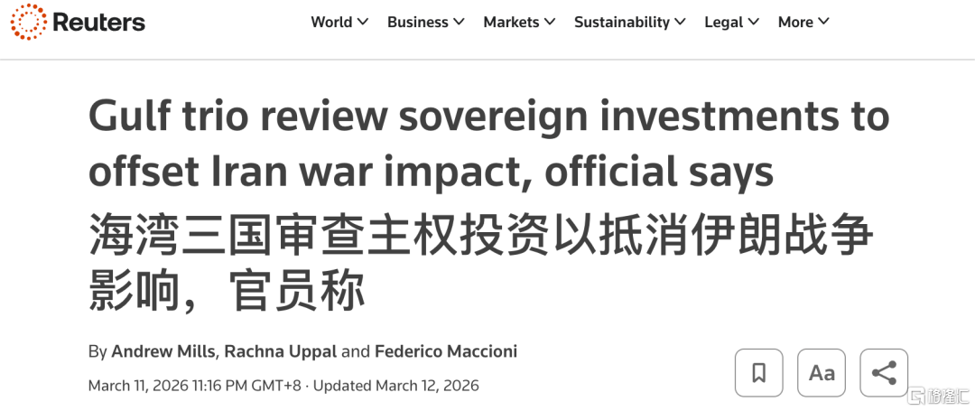 3月11日就有报道指出,三个海湾国家正在审查如何调配其主权财富基金投资的数万亿美元,以抵消美以战争引发的损失。