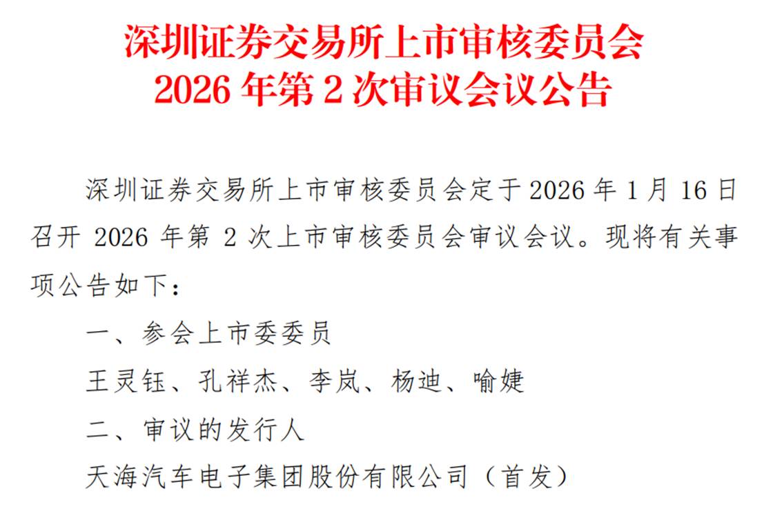 中国产经观察消息:2026年1月16日,深交所上市审核委员会即将召开审议会议,对天海汽车电子集团股份有限公司(以下简称“天海电子”)的深主板首发事项进行审核。这家号称“中国汽车零部件电机(连接器)龙头企业”“中国汽车电子电器电机行业领军企业”的公司,头顶诸多光环,拟募集资金约24.6亿元用于多个项目建设,看似前景一片光明。然而,在深入剖析其发展历程、财务状况、业务模式以及行业环境等多方面因素后,却发现其背后隐藏着诸多不容忽视的问题,这些问题可能成为其上市之路的重大阻碍。