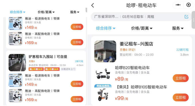 此外,这些服务门店往往经营隐蔽。蓝鲸科技记者走访发现,多家哈啰租电动车经销商甚至没有实体店面,就在地铁口附近交车,或是在一些二线品牌店里兼营,同时做着电动车租赁生意。这种流动式的经营模式,大大增加了监管难度。