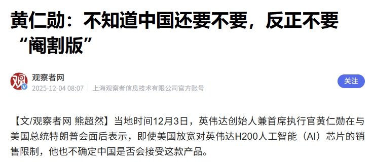 现在英伟达可能要开放高端芯片对中国的出口了,问题是中国要不要。