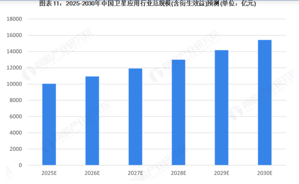 需求面上,应用场景在爆发。卫星应用行业的需求不断增长,特别是在民用领域。商业航天市场的快速发展也为卫星应用行业提供了更多的机会。随着商业航天企业的不断崛起,将会有更多的卫星被发射进入太空,为卫星应用行业带来更多的发展机遇。前瞻预测,未来五年卫星应用规模将以9%的增速增长,2030年或将达1.54万亿元