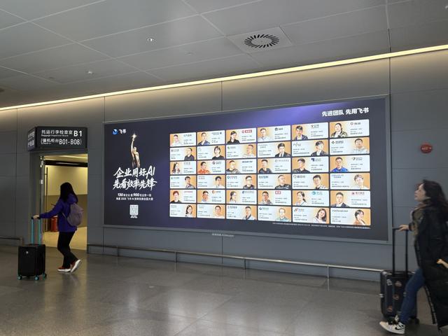 飞书AI效率先锋人物海报出现在上海虹桥机场
