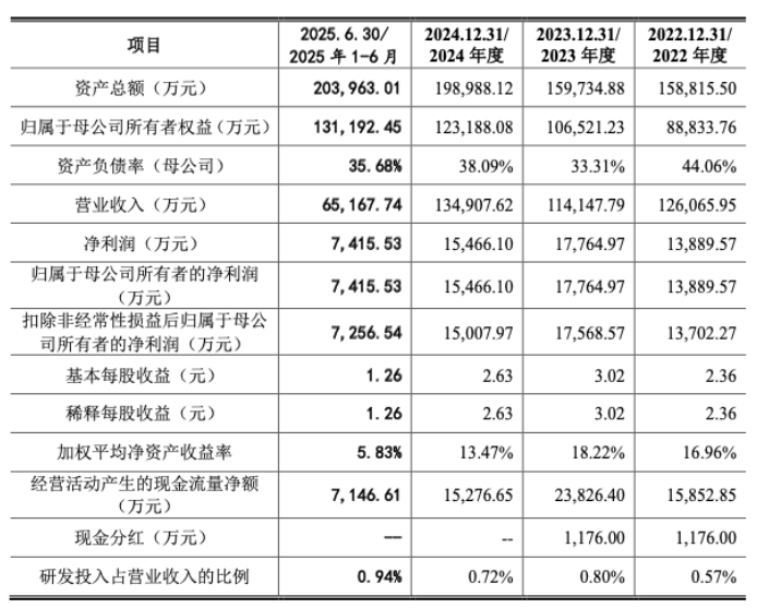 招股资料显示,公司核心产品中的农用履带、工程履带营收规模分别从2022年的6.21亿元、5.27亿元增至2024年的7.15亿元、5.39亿元,推动营收从12.61亿元增长至13.49亿元,复合增长率2.3%;归母净利润从1.39亿元增长至1.55亿元,复合增长率3.8%,其中在2023年行业需求短期承压(营收-9.45%)的背景下,2024年迅速反弹(营收+18.19%),展现强抗周期能力。