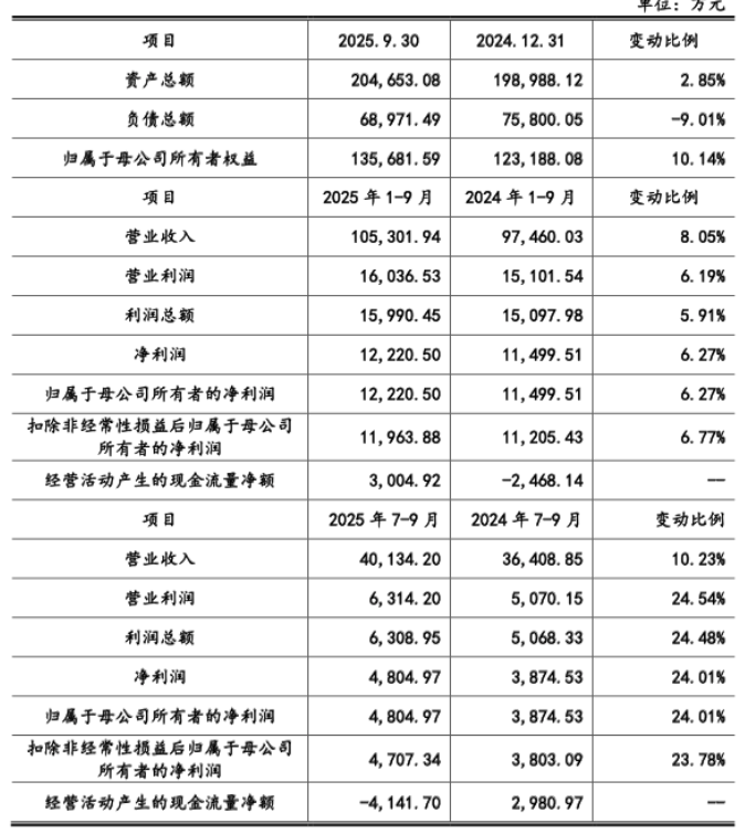 2025年前三季度,在“国三”改“国四”排放标准切换对农机市场需求的短期抑制影响进一步下降、下游大客户业务规模持续扩张,公司营收实现同比增长8.05%至10.53亿元,归母净利润同比增长6.27%至1.22亿元;其中单第三季度营收、归母净利润同比增速分别提升至了10.23%、24.01%,增势有提速趋势。