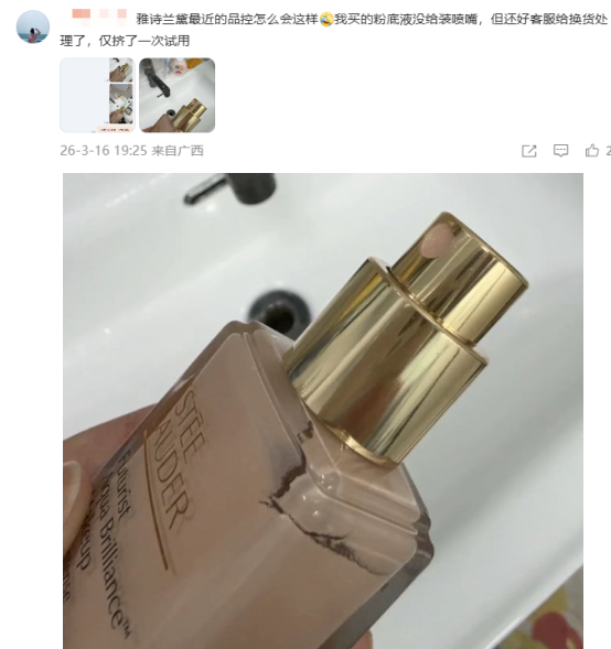 目前,记者在社交平台上已找不到朱女士的原帖。据媒体报道,朱女士在维权过程中,拨打了12315和12345热线,也在社交平台上发帖。不久后,雅诗兰黛线上官方客服回复表示,可以办理退款或者换货,并加赠体验装粉水50ml作为补偿。之后朱女士告诉媒体,经过与客服沟通,她已经同意退款并赠送一支口红的解决方案,且对处理结果表示满意。