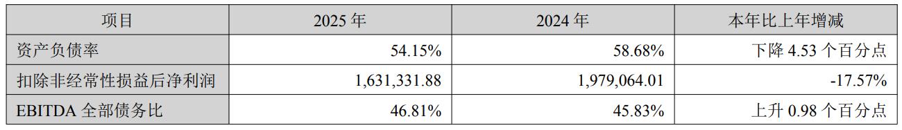 因此,在行业周期底部,降负债成为公司的核心目标之一。根据财报数据,截至2025年末,公司资产负债率为54.15%,较年初下降4.53个百分点,负债总额较年初下降171亿元,超额完成全年降负债目标。