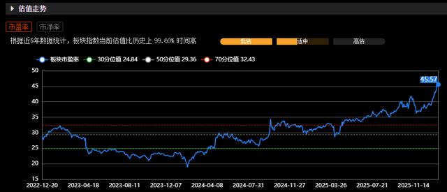 上半周,电网设备大热,有投资者在周二尾盘追进中国西电(601179.SH),第二天就被套。这哥们赶紧去查看电网设备整体市盈率。Choice数据显示,根据近5年数据统计,截至2026年1月22日收盘,该行业市盈率(TTM)45.57倍,比历史上99.6%时间都高。