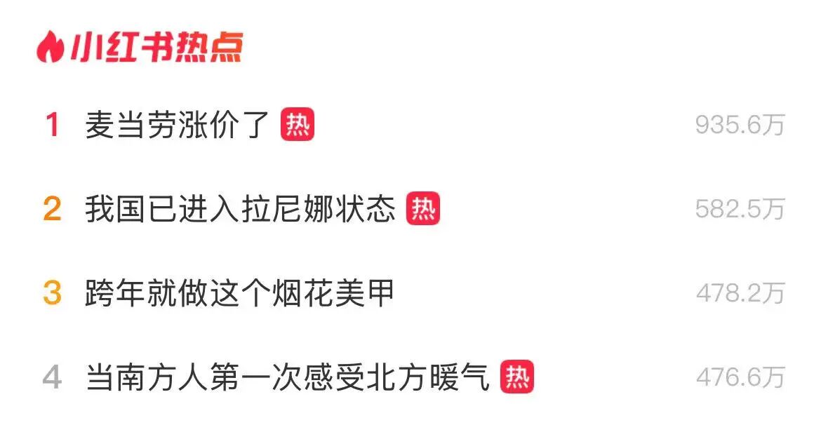 当日下午,“麦当劳涨价了”迅速登上小红书热点榜第一名,话题阅读量超935万人次。