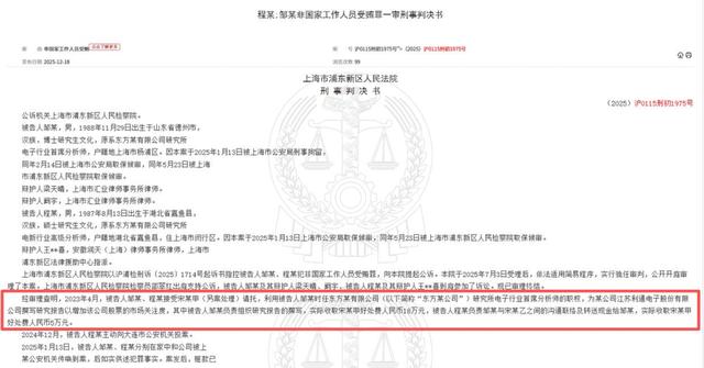 判决书显示,被告人邹某和程某原均就职于东方某有限公司研究所。