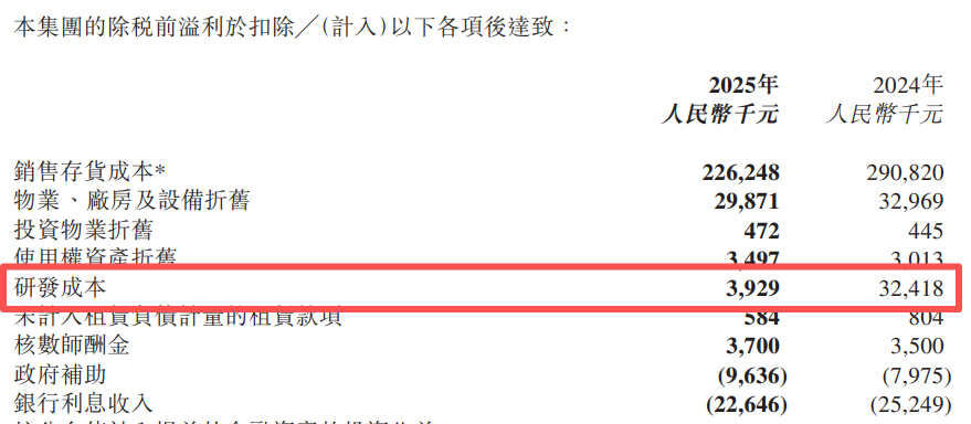 不过从事实的投入来看,“研发工作方面的卓著往绩”还真的只是过去式。金嗓子2025年年报中研发成本的断崖式下降格外引人关注。