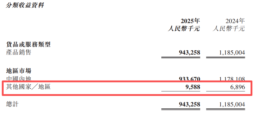 年报显示,金嗓子虽然在中国内地市场的收益下降,但其他国家/地区的收益大增,从2024年的人民币689.6万元提升到2025年的958.8万元,增幅达到39%,成为2025年年报中少见的亮点。