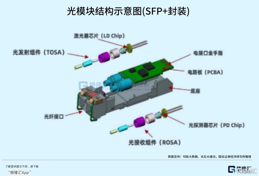尽管价值占比不如GPU\ASIC\HBM般大,激光器芯片是光模块实现光电转换功能的核心组件。在技术架构上,发射端的激光器芯片(如DFB、EML)将电信号转化为光信号,接收端的探测器芯片则完成逆向转换,两者性能直接影响光模块的传输质量,价值量在高端光模块中占据重要比例。