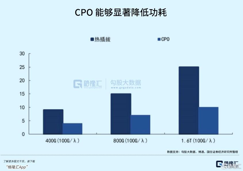 CPO(共封装光学)使得集成架构成为可能。这种架构转变既提升了性能,也改善了经济性,尤其在大规模AI计算集群中,互连功耗的降低可带来显著的运营成本节约。