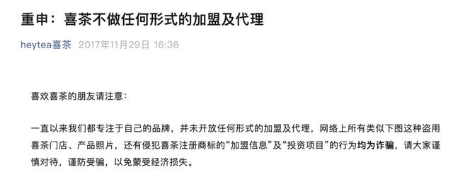 实际上,喜茶自身也发现了问题的严重,喜茶去年2月就宣布暂停加盟。