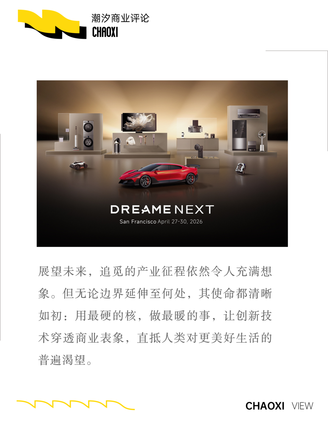 这份蓝图落地于为期四天的“DREAME NEXT”发布会。现场,“人车家”智能生态矩阵次第亮相,构建起一幅完整的生态图景。何为「Next」?它既是突破进化的下一代创新产品,也是被重新定义的下一代生活方式。