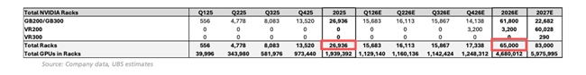 液冷需求的爆发式增长,为立敏达抢占市场份额创造了绝佳机遇。根据瑞银最新研报估算,2026年英伟达GB&VR(含Vera Rubin、Blackwell)系列机柜出货量预计将达6万机柜,按每机柜对应至少108块冷板计算,仅这一系列产品的冷板总需求量就超648万块,凭借核心技术与百万套产能优势,立敏达已具备冲击15%市场份额的坚实条件。