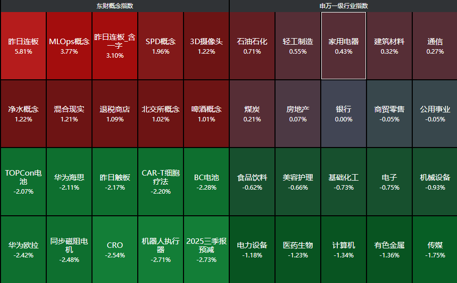 分行业来看,石油石化、轻工制造、家用电器、通信等行业领涨,传媒、有色金属、计算机、医药生物、电力设备等行业领涨。