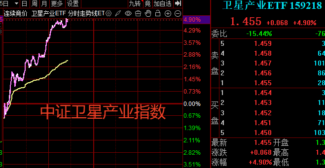要说真是离谱,一直等调整,可周四等来卫星的发疯。挂钩中证卫星产业指数的卫星产业ETF(159218.SZ)盘中涨幅一度超过5%,洪荒之力加成了!