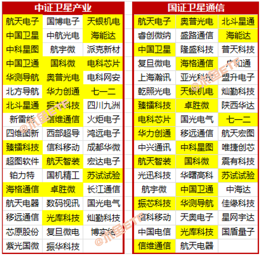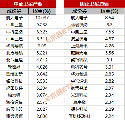 差异上,中证卫星的权重股更为集中些,比如航天电子的权重比国证的高了1.5%,贡献更大;而且产业链延伸丰富了广度和深度,比如多了一些软件股。而相对而言,国证卫星中的通信领域更深度。