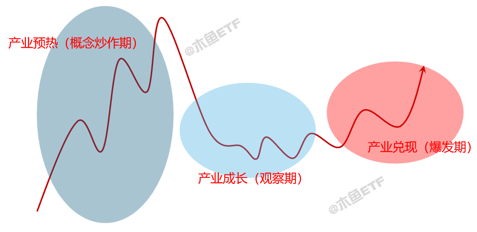 卫星近期涨幅不小,但由于概念太大,总体预期是长期反复活跃。正如同机器人概念去年开始预热时火爆一样,利好频率+共识是关键。如上图,没出业绩的时候,反而最容易产生预期,打出高度。而真开始一板一眼发展的时候,反而市场会冷静,就如同现在机器人一样。如果出现了高毛利的产业龙头,机构会扎堆进入来抱团,就是兑现期了。