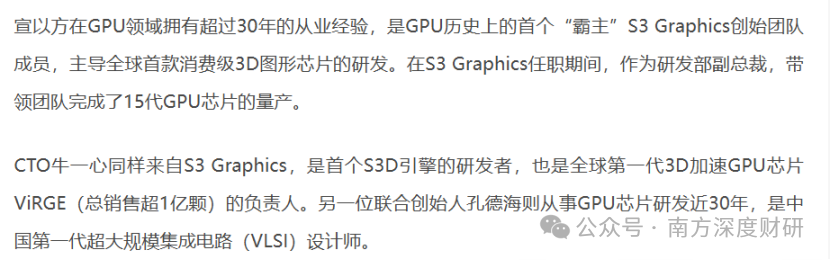 砺算科技的核心团队由GPU鼻祖S3 Graphics创始团队成员宣以方领衔,其余两位关键人物还有牛一心、孔德海。