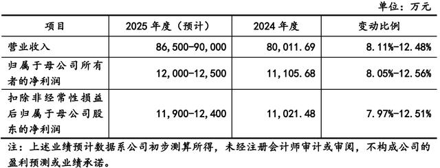 同时,天溯计量预计其2025年度的营收约为8.65亿元至9.00亿元,同比增长8.11%至12.48%;预计归母净利润约为1.20亿元至1.25亿元,同比增长8.05%至12.56%;预计扣非后净利润约为1.19亿元至1.24亿元,同比增长7.97%至12.51%。