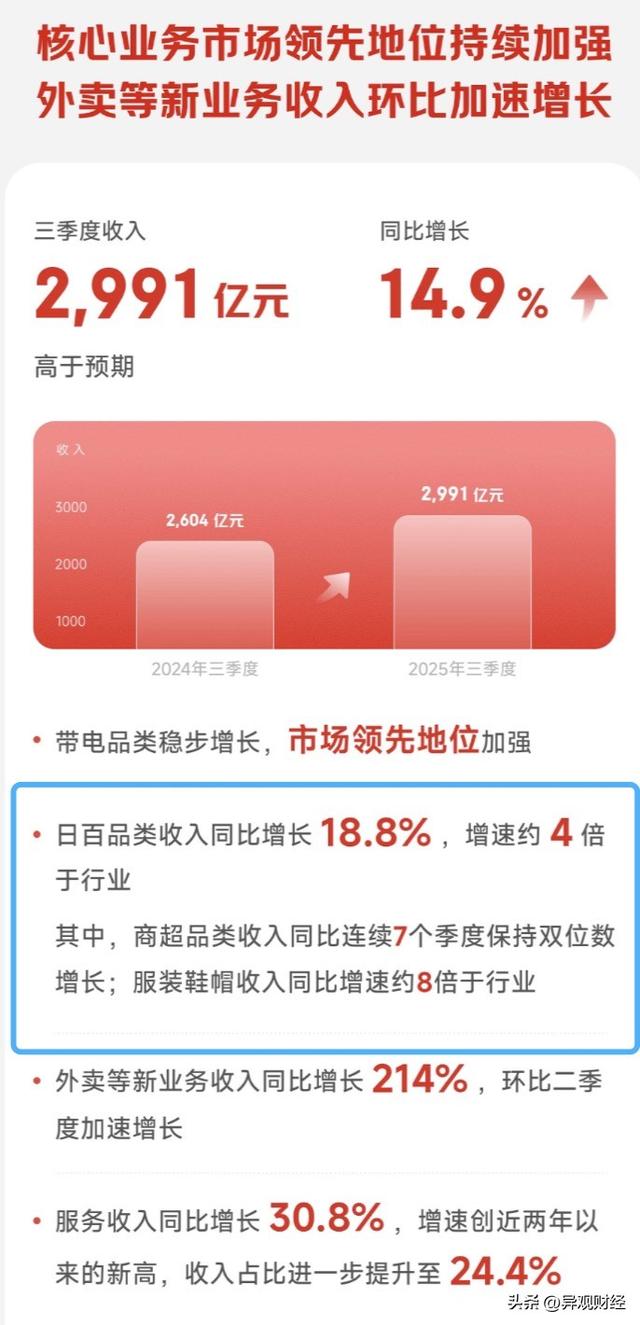 透过2025年第三季度财报数据,可以看到京东正是这样一个典型案例: