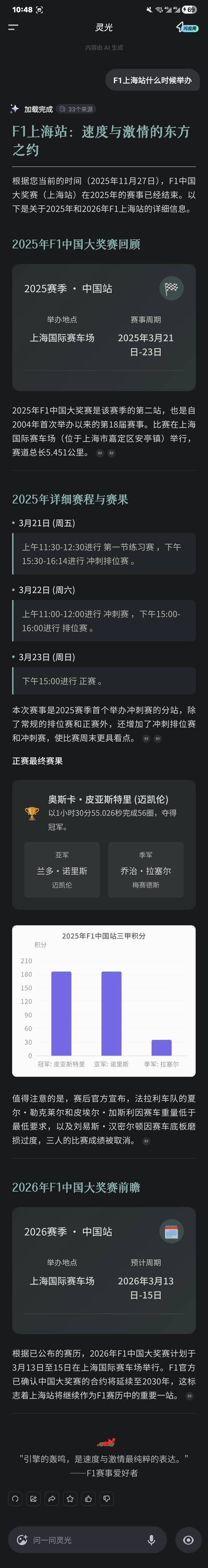 比如,你抛给灵光一个问题,它不只是给你一串文字的答案,还会穿插表情、图片,有时候还有动画,甚至会有一个类似于公众号的排版风格。