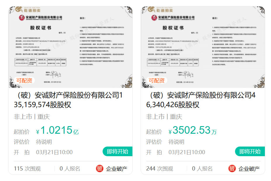 另需关注的是,安诚财险还面临股权处置遇冷、合规压力等挑战。记者注意到,该公司第四大股东重庆公路集团所持的1.82亿股股权(占总股本4.45%)将于3月21日在阿里资产拍卖平台再度开拍。该笔股权此前已多次流拍。起拍价也自2025年11月的2.90亿元降至1.91亿元,如今再度下调至1.37亿元。