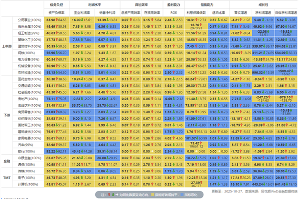 行业财务指标同比变动