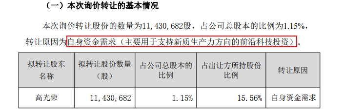 2024年12月,高光荣因“涉嫌违反限制性规定转让股票”等行为,被证监会立案调查。
