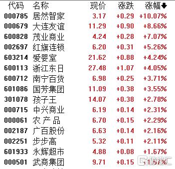 零售板块走高,居然智家涨停,大连友谊、茂业商业、红旗连锁、浙江东日、南宁百货、国芳集团等跟涨。