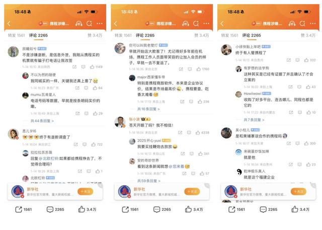 此前,2025年7月郑州多家酒店经营者举报携程通过“调价助手”功能擅自修改客房价格。多位酒店负责人称,携程平台通过该技术手段修改酒店房间价格,并且不经商家允许修改商家的活动折扣。