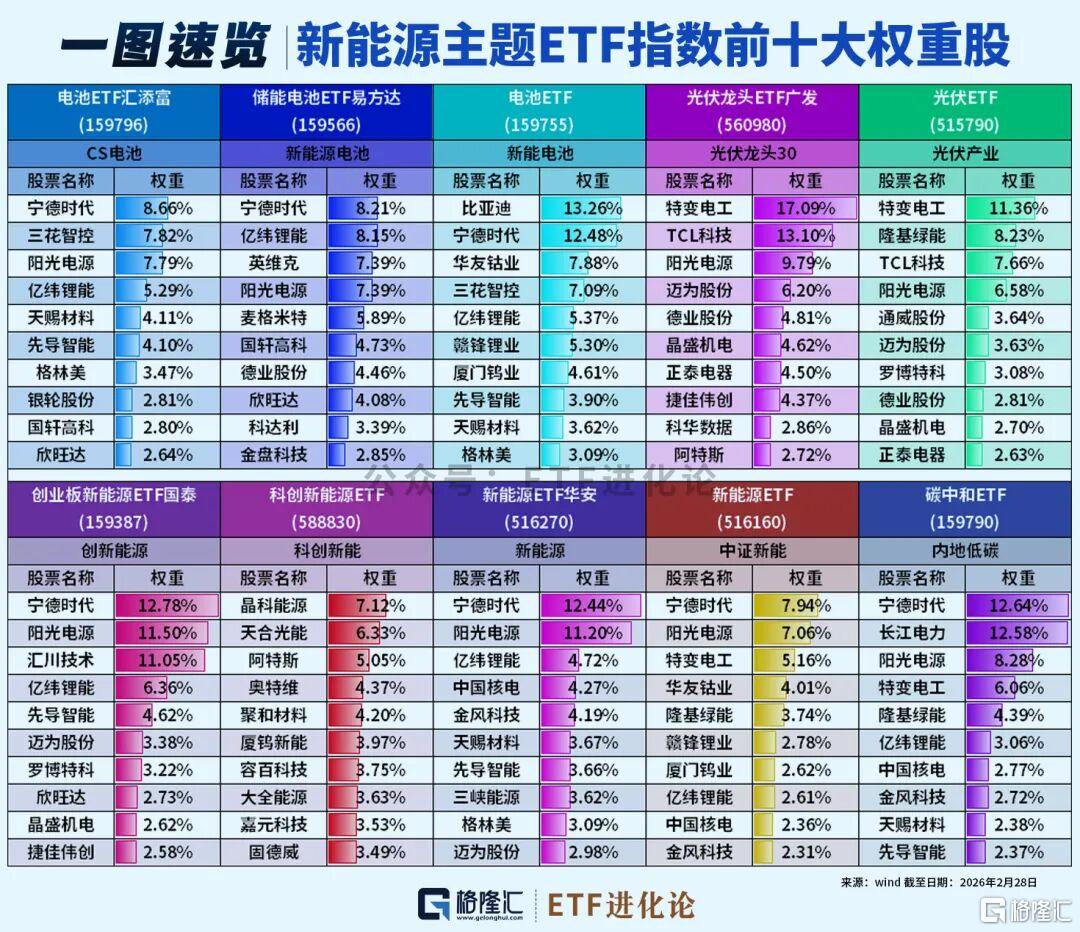 新能源赛道持续火热,但面对CS电池、光伏龙头30等多只指数,容易混淆。它们各有侧重,一图速览新能源主题ETF~
