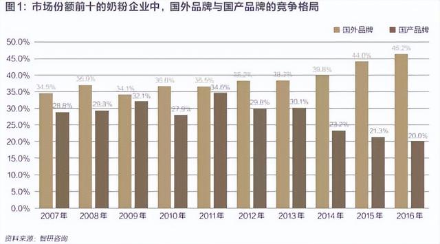 要知道,事件发生前国产奶粉处于市场主导地位,市占率超过60%,三鹿甚至拥有定价权。事件发生后,市场信心全无,外资品牌迅速填补市场空白。数据显示,进口奶粉的市占率在高峰期一度超过70%。