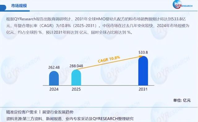 截至2025年3月,受访消费者对HMO的关注度达到了73.49%,添加HMO的种类和数量已经成为相关产品差异化的卖点之一。更直接推动了全球HMO市场规模在2024年达到约24.4亿元,并预计将以13.3%的年复合增长率高速扩张。