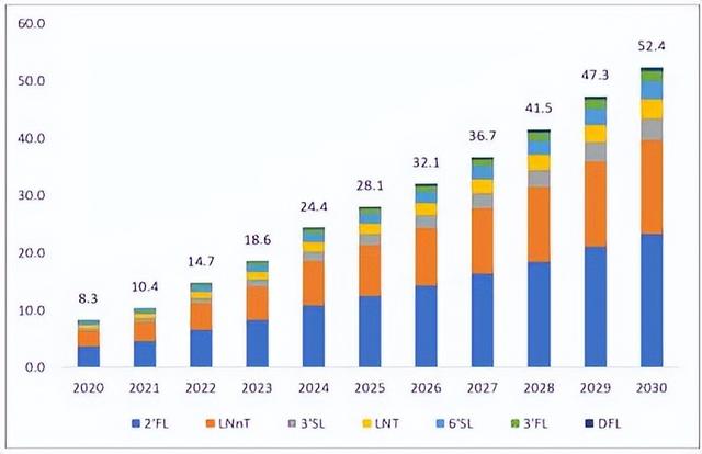 中国对HMO的审批布局始于2016年,经过数年严谨评估,2023年10月国家卫健委正式批准2'-岩藻糖基乳糖(2'-FL)和乳糖-N-新四糖(LNnT)用于婴幼儿配方食品,HMO在中国市场实现了从“0到1”的突破。
