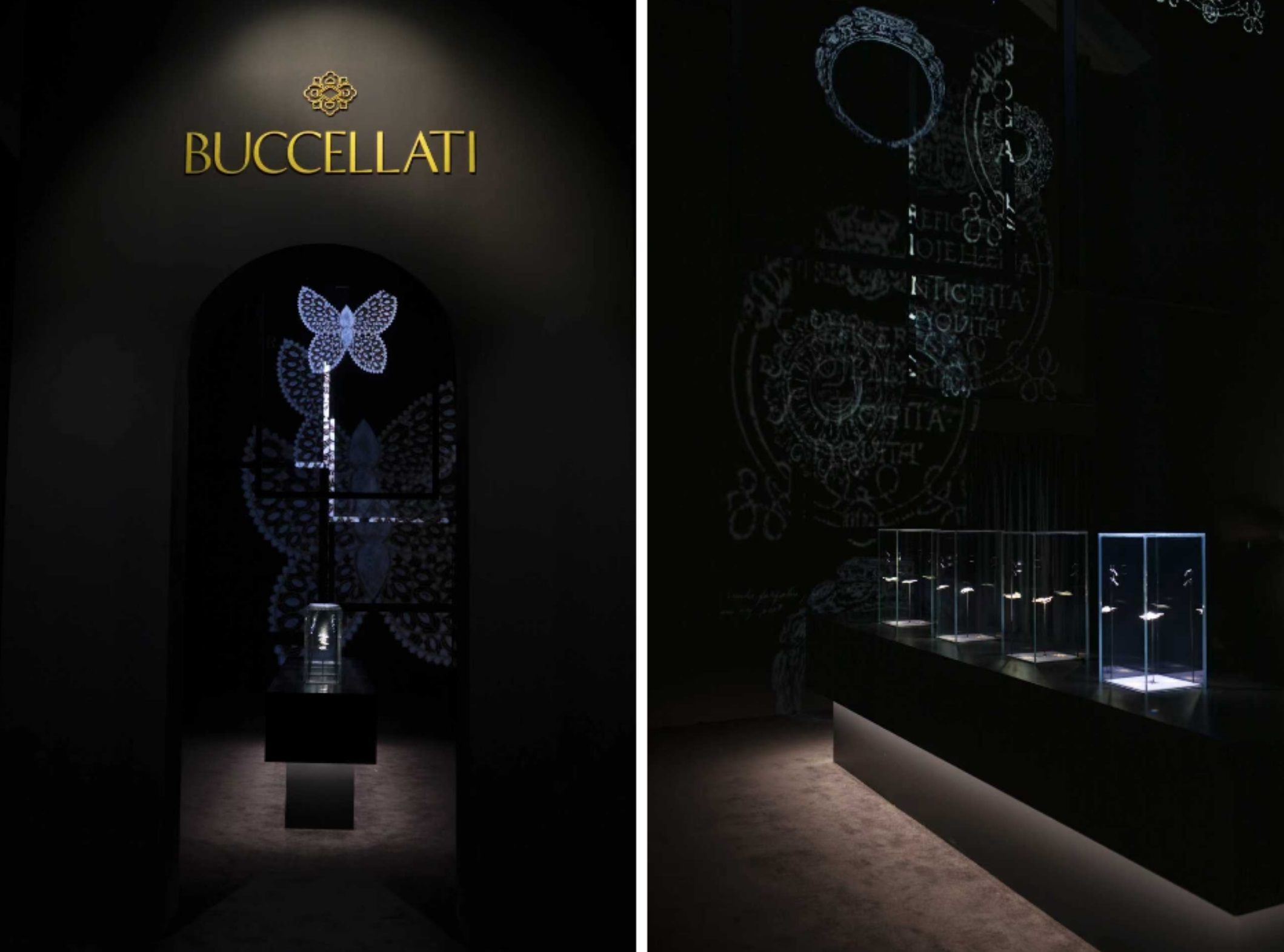展览始于“世代传承”展厅,以象征着蜕变与延续的蝴蝶为核心意象,引领观众探寻品牌历史脉络与美学精髓。展厅中的四枚精美蝴蝶胸针分别由布契拉提家族四代成员Mario、Gianmaria、Andrea与Lucrezia Buccellati设计而成,生动诠释了品牌跨越世代的风格演进。