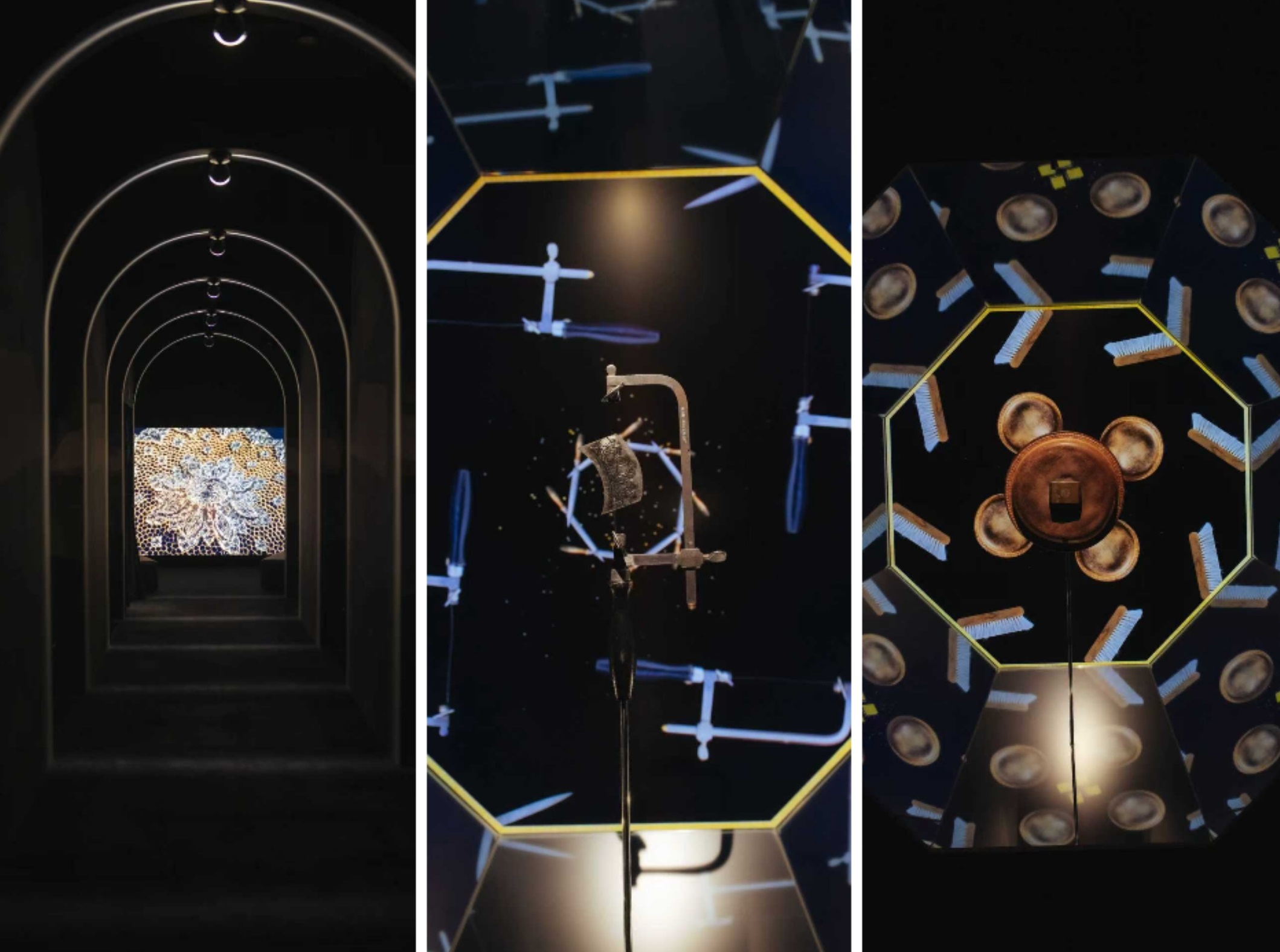 延续至“工艺臻境”展厅,三个主题空间依次展开,探寻布契拉提的艺术灵感之源。第一主题空间“闪耀非凡时刻”悉心陈列精美的古董晚宴手袋、匣式手拿包,与品牌第三代传承人Andrea Buccellati设计的全新珠宝晚宴手袋;第二主题空间“礼赞比例美学”则致敬金工匠艺与建筑美学的深厚渊源;第三主题空间“追溯经典传奇”则通过Mario和Gianmaria Buccellati创作的Boscoreale系列银器杯作,呈现对考古学与古典艺术的深切致意。