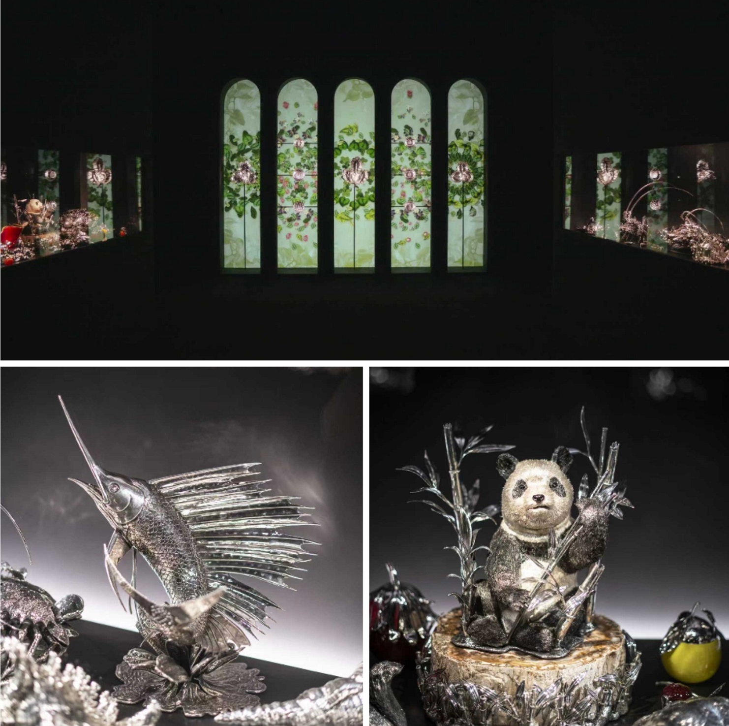 步入“自然秘境”展厅,展厅中以动态投影技术再现文艺复兴时期植物插画和画作,精致的餐桌中央摆件、碗具以及各式尺寸精巧的器皿摆件,生动演绎布契拉提隽永优雅的餐桌艺术。“绿野寻踪”和“幽海探秘”两个主题空间的银器杰作则栩栩再现林间与海底生灵的灵动姿态。布契拉提与意大利品牌Venini和Ginori 1735联袂打造的精妙作品亦陈列于此。徜徉于“匠艺之界”沉浸式廊道,从弓锯、雕刻刀、锉刀到“ad ascia”棉线,可探索布契拉提精湛工艺的奥妙。