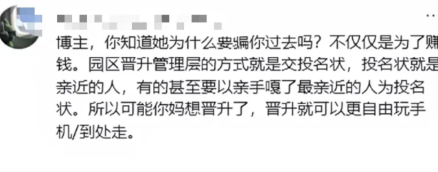 有网友说,这段话,把妈妈两字盖住,不就是最经典的诈骗话术吗?