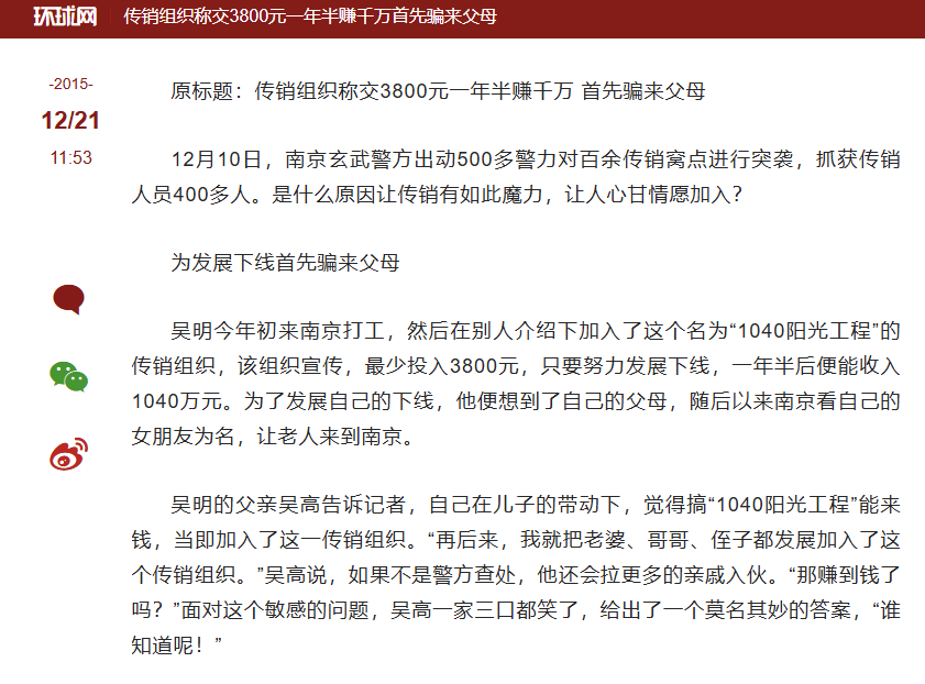 有加入的,为了发展自己的下线,便想到了自己的父母。