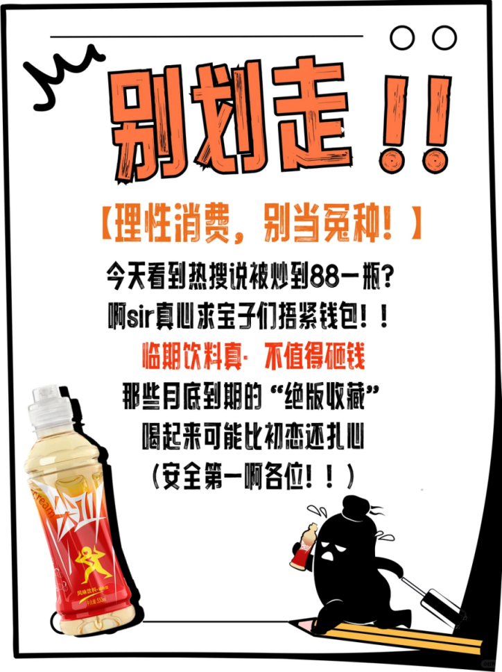 这场昙花一现的返场,在2025年7月以“原价5元一瓶的红色尖叫被炒到8900元一箱”登上热搜:二手交易平台上,2024年生产的红色尖叫价格飙升,甚至有卖家标出8900元/箱的天价。对此,“尖叫”品牌发文称:“感恩厚爱,受宠若惊,但临期饮料真不值得砸钱。”