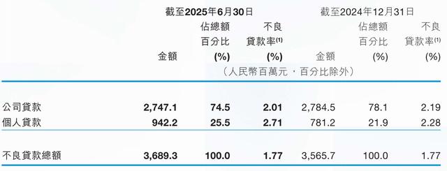 截至2025年6月末,晋商银行不良贷款总额约为36.89亿元,较2024年末增加约1.24亿元;不良贷款率为1.77%,虽与2024年末持平,但与2025年二季度商业银行1.49%的平均水平相比仍高出0.28个百分点。