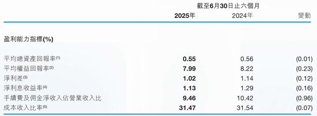 尽管净利润勉强维持增长,但晋商银行的核心盈利指标已现疲软之势,截至2025年6月末的净利差减少0.12个百分点至1.02%,净息差减少0.16个百分点至1.13%;平均总资产回报率、平均权益回报率亦出现了0.01%、0.23%的下滑。