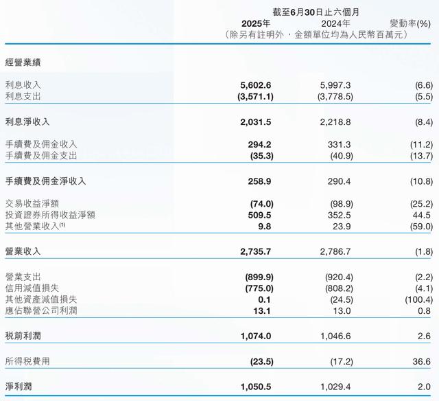 2025年中期报告显示,晋商银行上半年实现收入27.36亿元,较2024年同期的27.87亿元减少约1.8%;其中,占据主导地位的净利息收入同比下滑8.4%至20.32亿元,手续费及佣金净收入也降至2.94亿元,降幅达到11.2%。