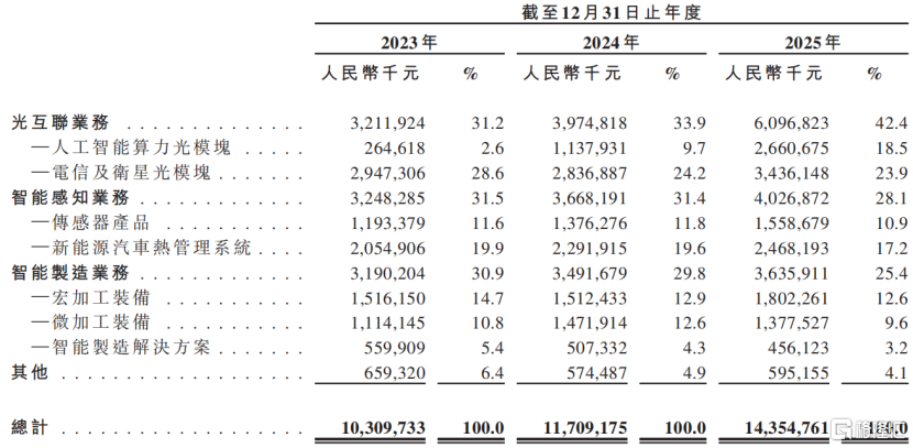 至2025年,公司的光互联业务收入增至60.97亿元,较2023年的32.12亿元增长了89.82%,占公司总收入的比重增至42.4%。