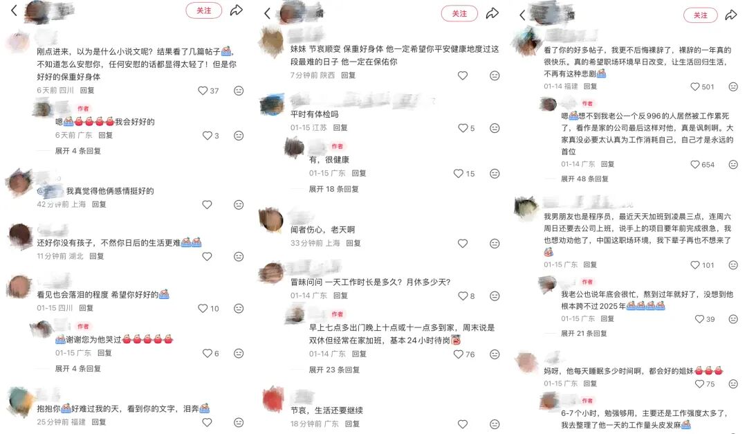 不少网友在杨女士另一则帖子下留言,安慰这位失去丈夫的妻子。
